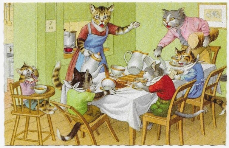 Some time ago, we considered two examples of postcard art of one publisher, the Alfred Mainzer Company of New York: “Cats at School” and “Pansies
