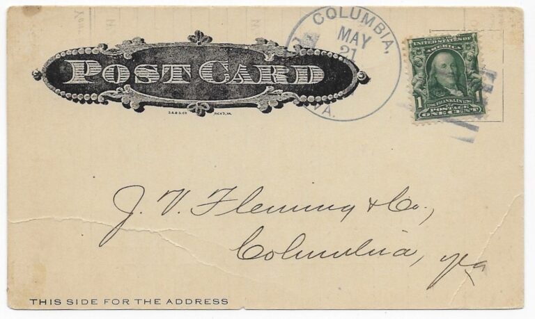 In May of 1908, the J. V. Fleming Company received a credit statement or receipt from the State Bank of Columbia. The Bank and the