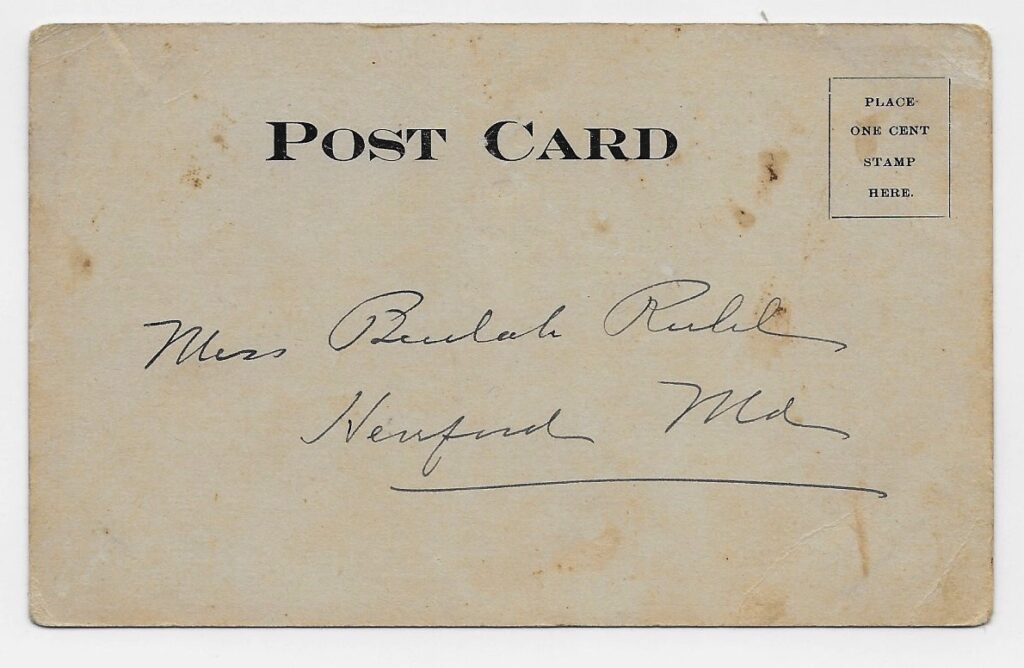 The postcard was not mailed, suggesting that the sender lived nearby or had regular contact with Beulah.