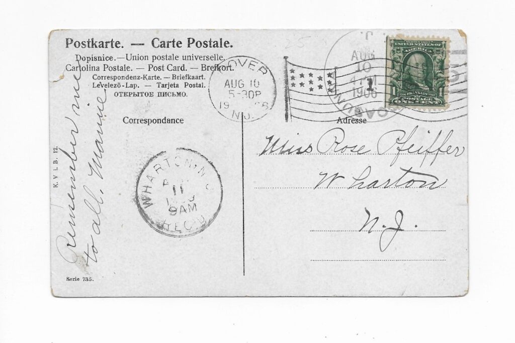 Marie mailed the postcard from Succasunna, an unincorporated community in Morris County.