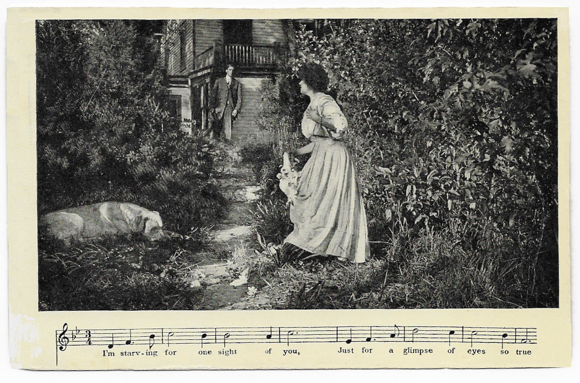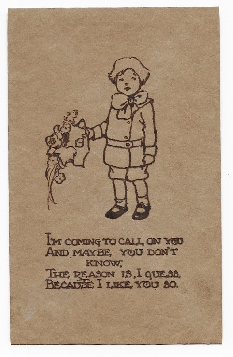 This postcard lacks a postmark with date and location – so we can only approximate the date that it was mailed.
