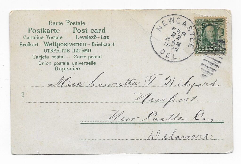 Miss Lauretta Hilyard lived in Newport, an historic town (founded in 1735) on the Christina Rive in northern Delaware.