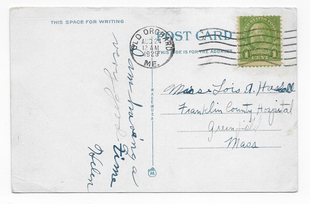 Helen mailed the postcard from Old Orchard, a resort town on Saco Bay on the Atlantic Coast of southeast Maine.