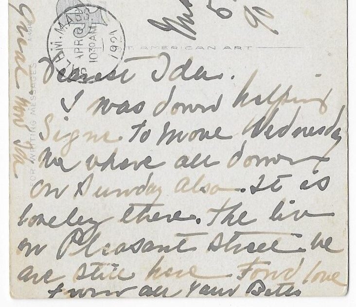 In April of 1921, Ida received a postcard from a friend – the handwriting is very difficult to interpret, possibly “Beth”.