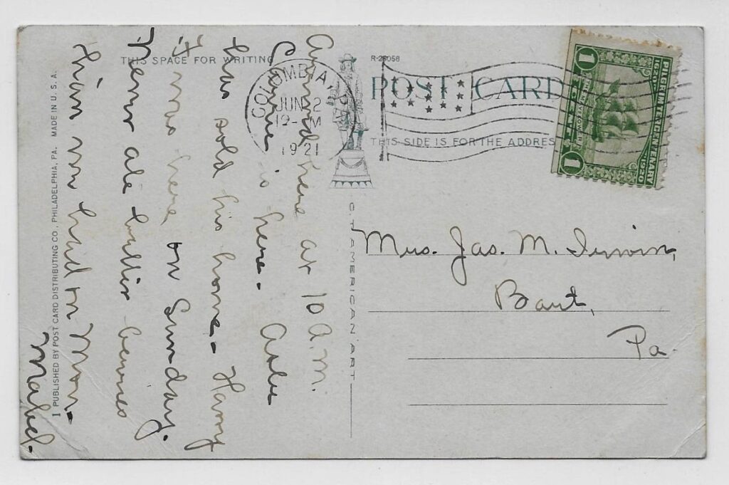 Mabel mailed the postcard from Columbia, the lovely borough on the banks of the Susquehanna River in western Lancaster County.