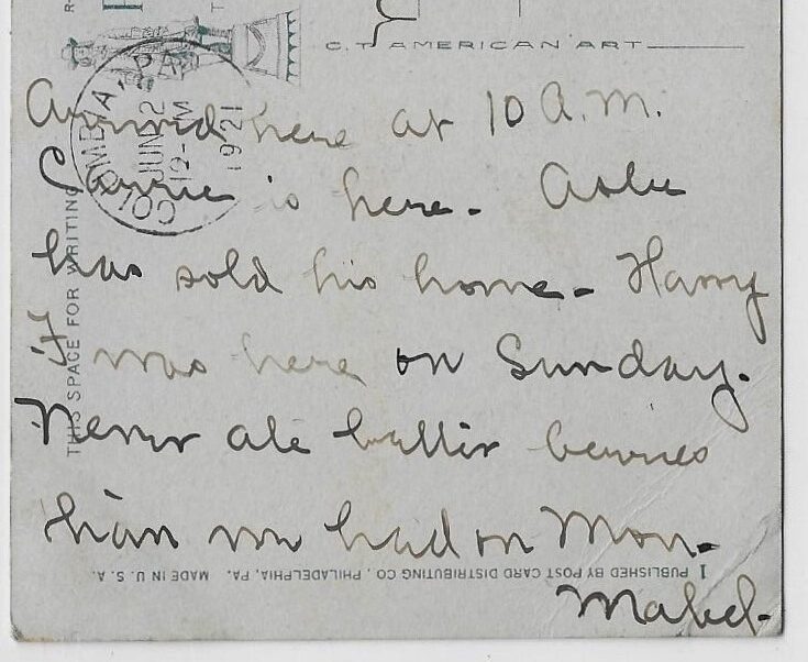 In June of 1921, Mrs. Irwin received a postcard from Mabel.