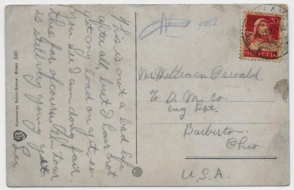 One hopes that Les continued to enjoy Switzerland and was satisfied by the trip.