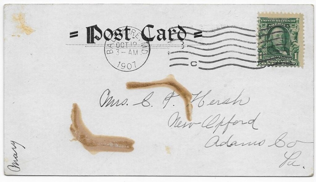 In early October of 1907, Mrs. Hersh received a postcard from Mary.