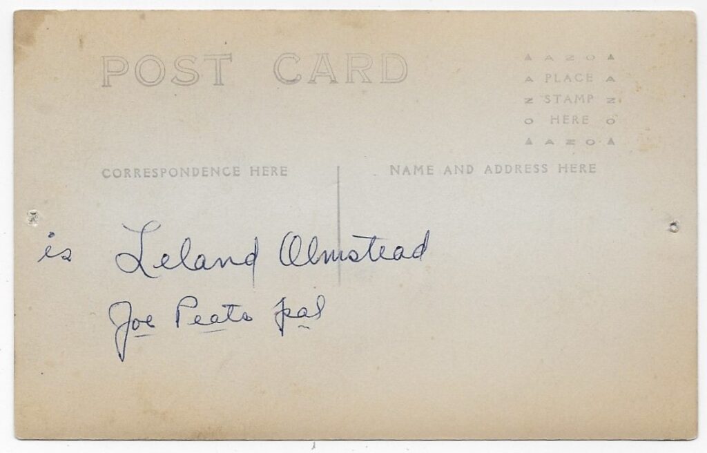 “(this) is Leland Olmstead” and “Joe Peat’s pal”.
