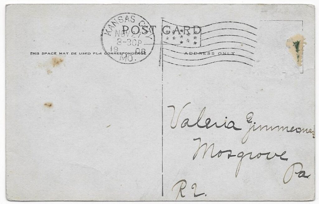 Miss Valeria Zimmerman lived in Mosgrove, an unincorporated community along the Allegheny River in Armstrong County of west-central Pennsylvania.