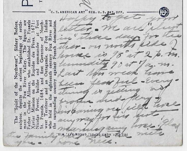 The postcard was first published by the City News Depot of Green Bay, Wisconsin.