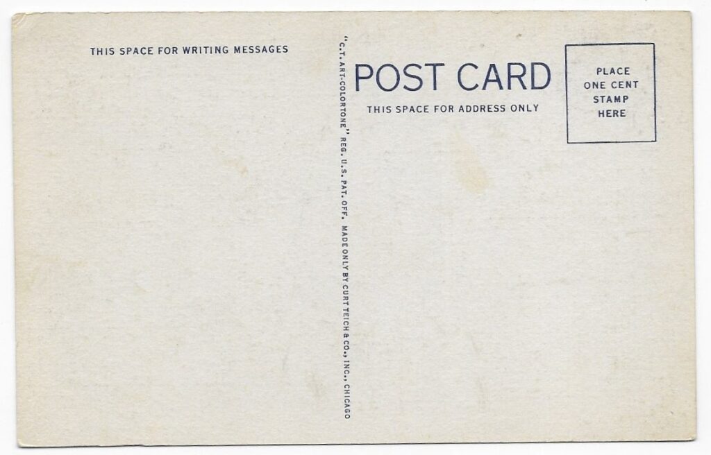 This postcard was published by the Curt Teich Company of Chicago, and may be a souvenir which was collected by a visitor to the Polar Caves in the 1930’s.