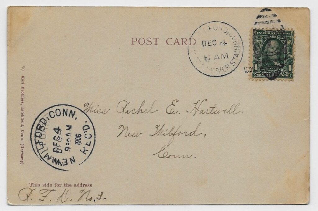 The postcard was published by Karl Brothers of Litchfield, CT; it was printed in Germany.