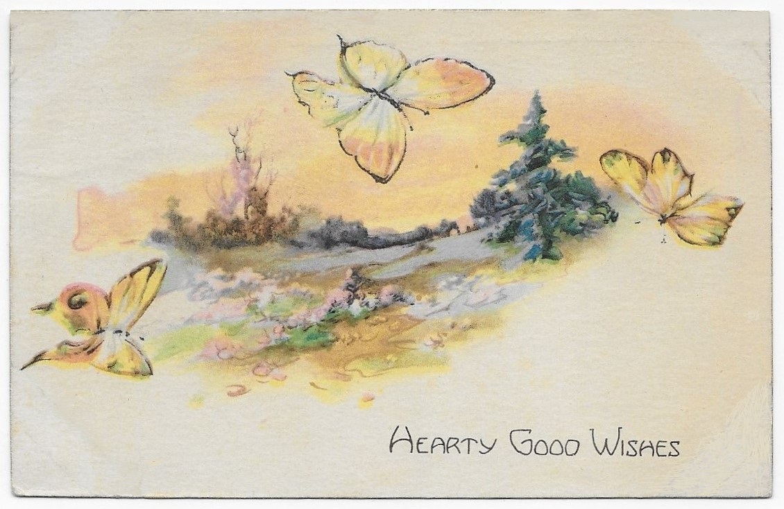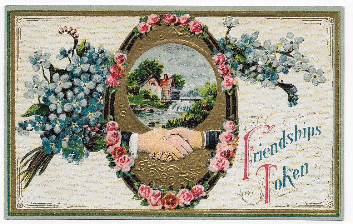 Absent a special occasion, friends and neighbors sent millions of postcards to share the minutia of daily lives. Headings such as, “Thinking of You”, From a Friend”, or “Loving Thoughts” were common.
